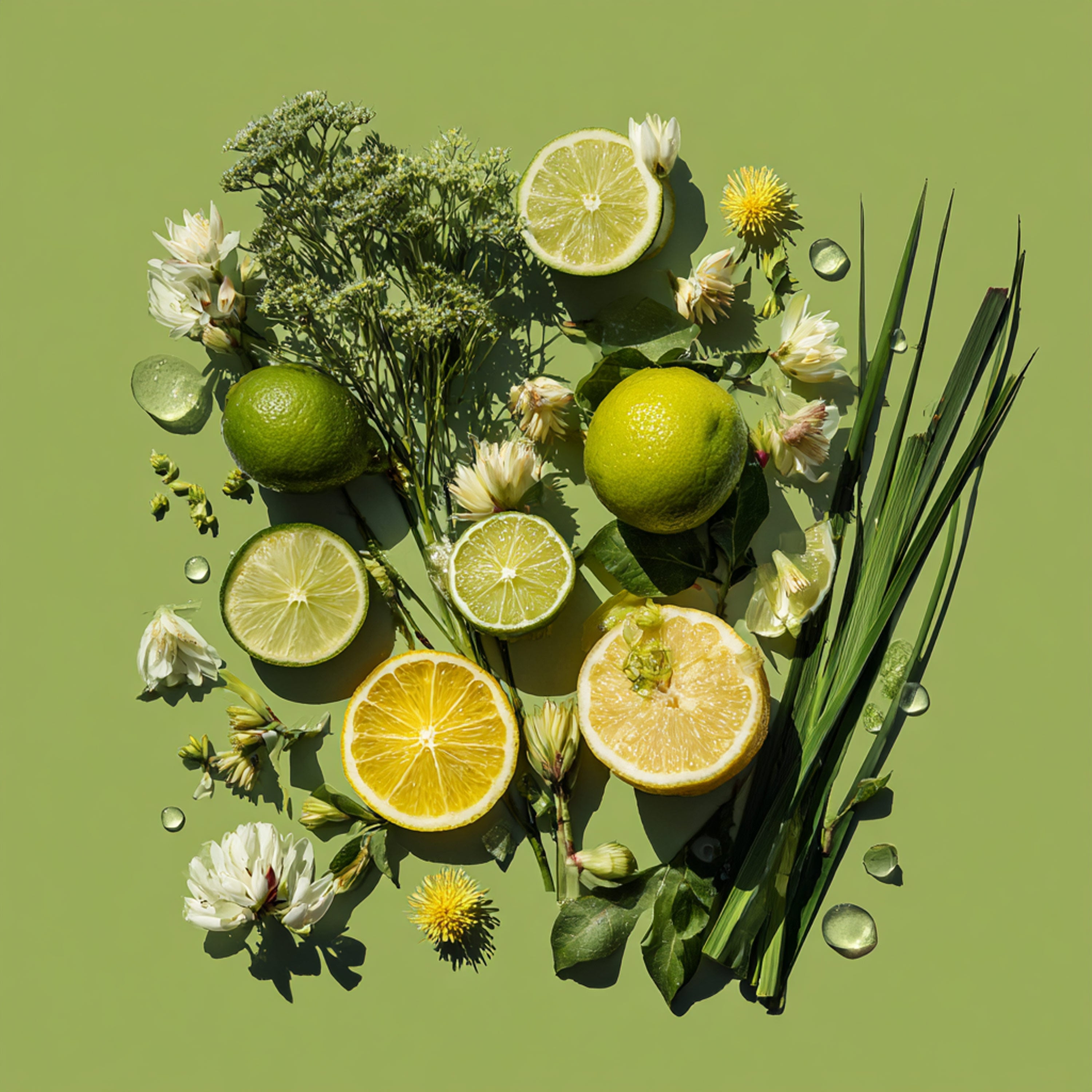 cytrusy, kwiaty, trawa cytrynowa