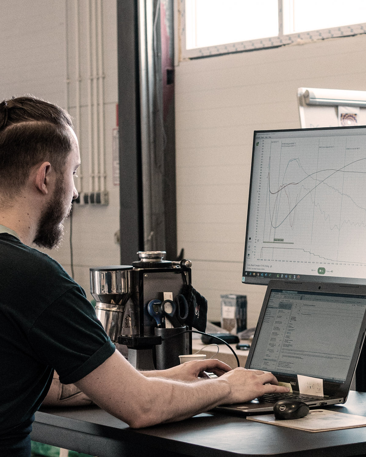 Po sprofilowaniu (ustaleniu szczegółowego sposobu palenia) danego ziarna określamy parametry QC takie jak: kolor, czas wypału, temperatura końcowa, development time i wiele innych. Dzięki temu ustalamy standard jakości, charakter kawy oraz nuty sensoryczne, które będą powtarzalne w każdej partii.