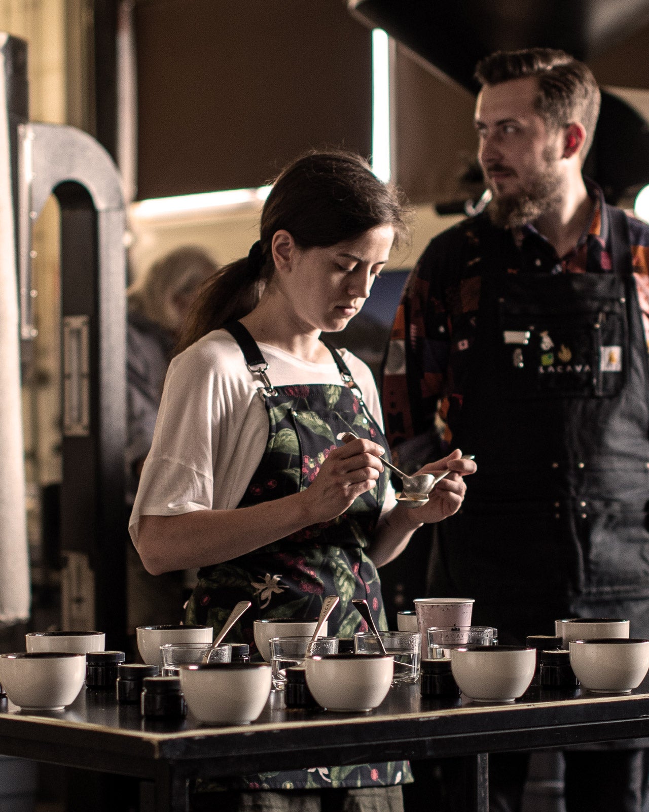 Bez świeżego surowca o wyjątkowej jakości nie ma mowy o wybitnej kawie w filiżance. Alek z Karoliną testują dziesiątki próbek nowych, świeżych ziaren na etapie pre-shipmentu, aby wybrać prawdziwe perełki. Cupping testowy na próbkach to podstawa działania każdej palarni specialty.