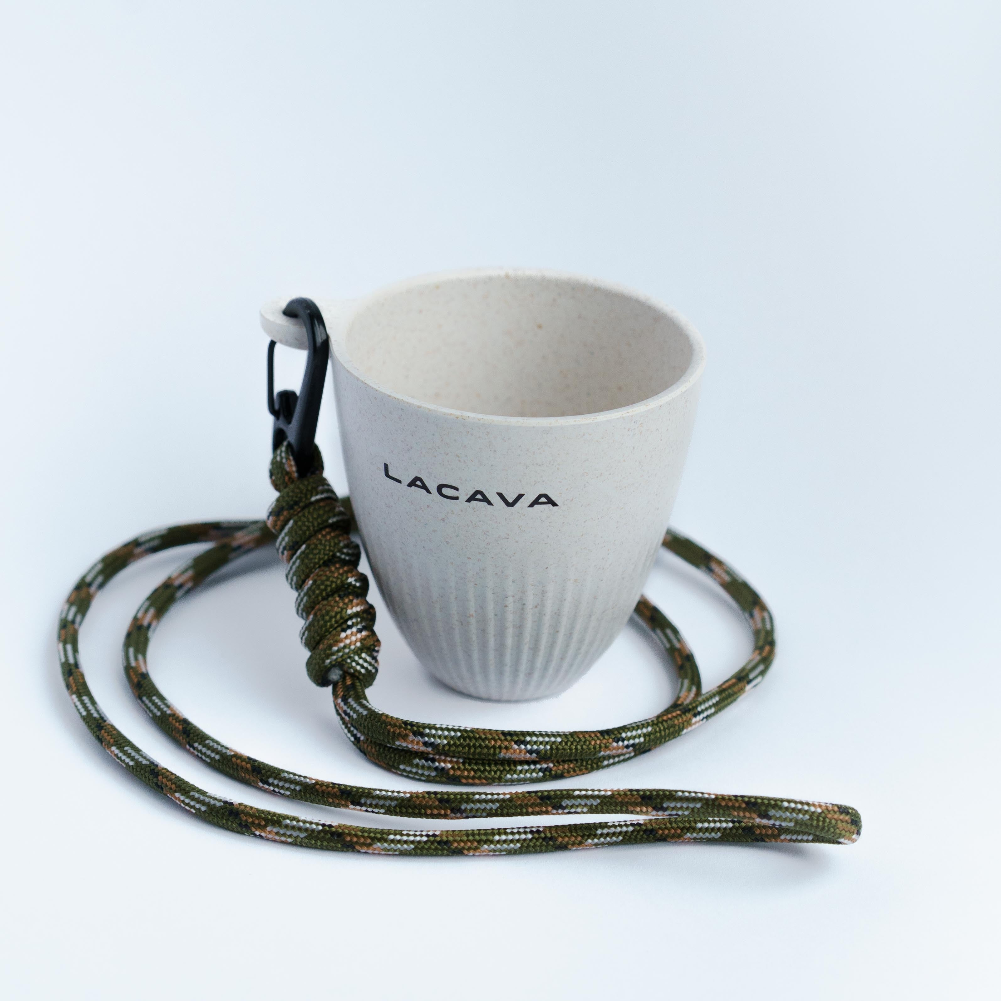 Wykonany z przetworzonych fusów po kawie, zachwyca nie tylko formą, ale i ideą. Lekki, poręczny, z praktycznym sznurkiem – możesz go zawiesić na szyi lub przypiąć do plecaka, by zawsze był tam, gdzie Ty.