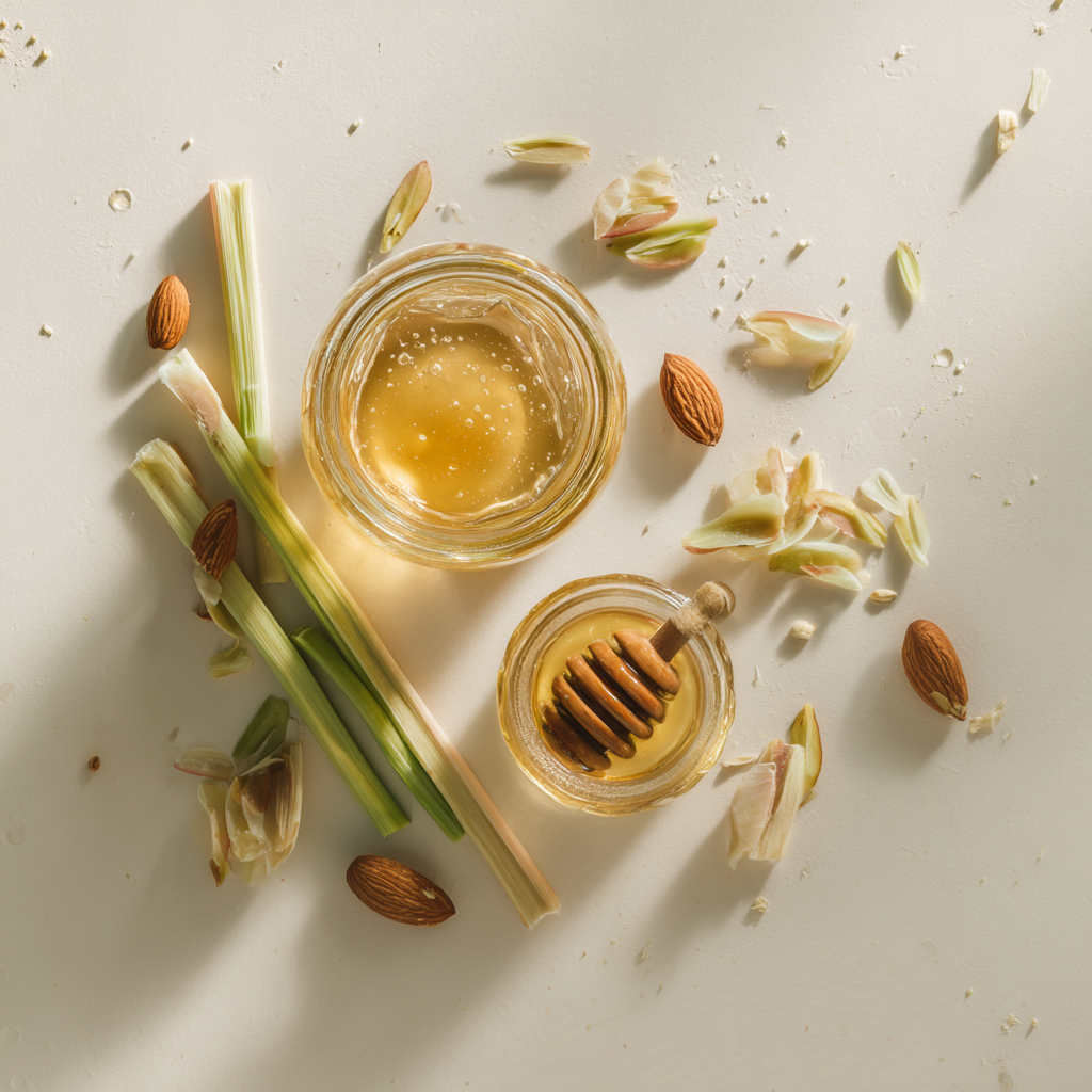 miód kwiatowy, trawa cytrynowa, migdały