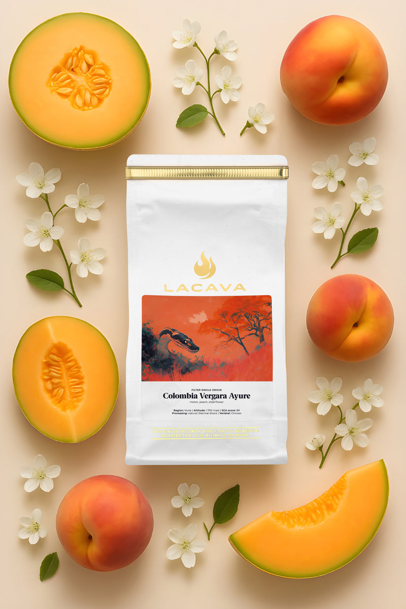 Prosto z kolumbijskiego regionu Huila, z farmy Jhoana Manuela Vergary Ayure, trafia do nas kawa, która zachwyca swoją wyjątkowością już od pierwszego łyku. To Chiroso – rzadka i ceniona odmiana, która w tej odsłonie eksploduje nutami dojrzałego melona, soczystej brzoskwini i delikatnego kwiatu czarnego bzu.