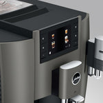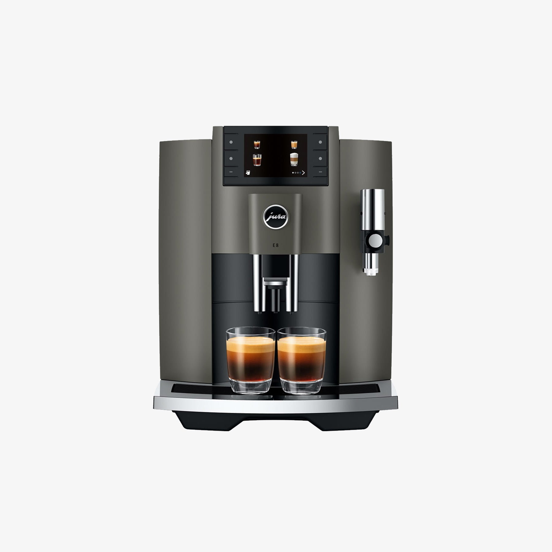 Jura E8 wyróżnia się nowoczesnym designem i dbałością o szczegóły. Symetryczne linie i starannie rozmieszczone akcenty nadają mu harmonijny, elegancki wygląd. Wysokiej jakości materiały oraz precyzyjne wykonanie sprawiają, że E8 zachowa świeżość i nowoczesność przez wiele lat, tworząc wyjątkową estetykę w Twojej kuchni.