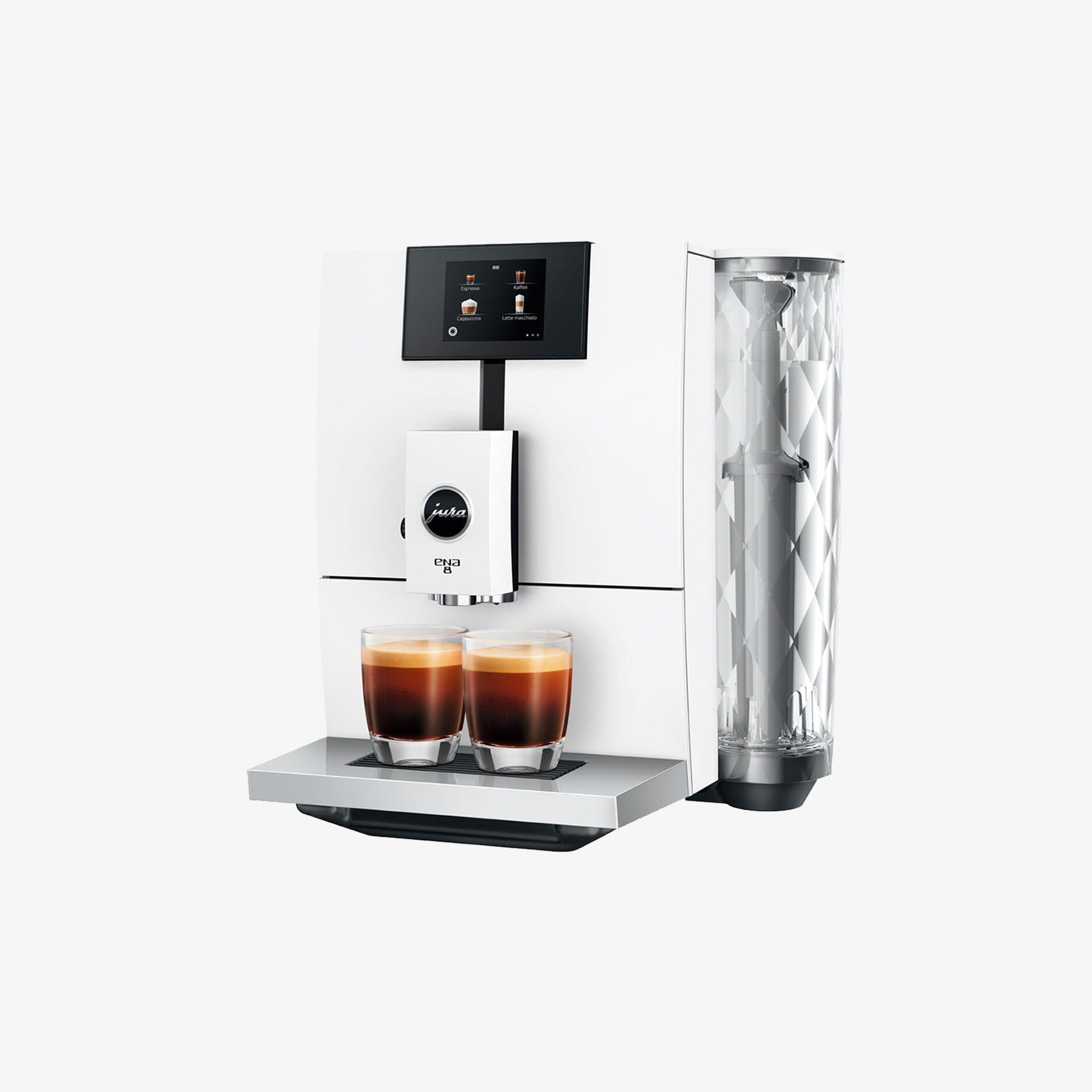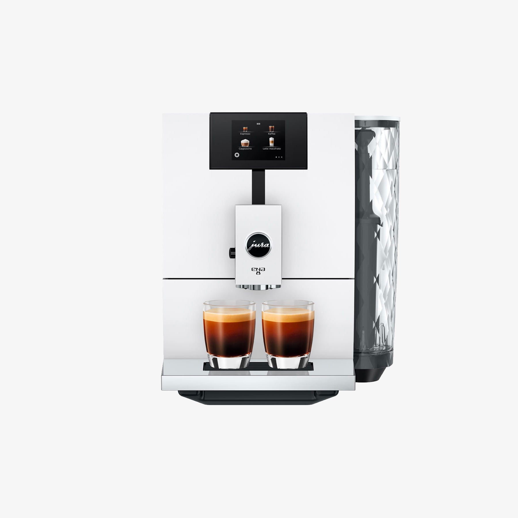 Z przejrzystym wyświetlaczem dotykowym i intuicyjnymi opcjami, masz dostęp do 15 wyjątkowych specjałów jednym dotknięciem. System mleczny czyścisz bez trudu, za pomocą jednego przycisku, gwarantując higienę certyfikowaną przez TÜV. ENA 8 obsługujesz również z poziomu smartfona dzięki technologii WiFi i kompatybilności z J.O.E.®.