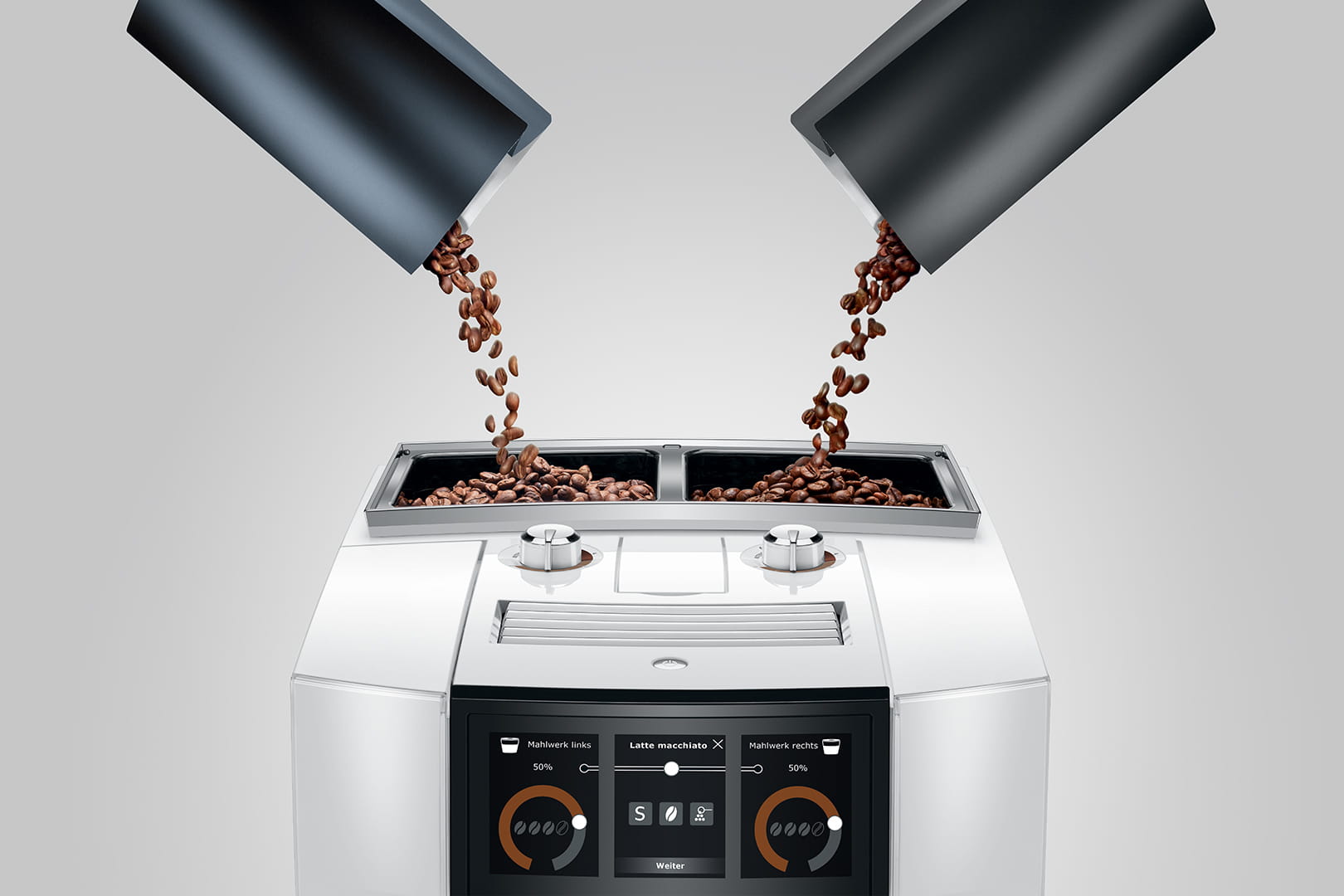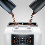 J8 Twin przekształca kawowe doznania, oferując 31 wyjątkowych specjałów. Dzięki dwóm młynkom dostosowuje każdą filiżankę do Twojego gustu – świeżo mielona, bogata lub łagodna, z kofeiną lub bez. To wszechstronne urządzenie łączy zalety dwóch ekspresów, subtelnie aromatyzując i słodząc mleczną piankę, aby zaspokoić każdy smak.