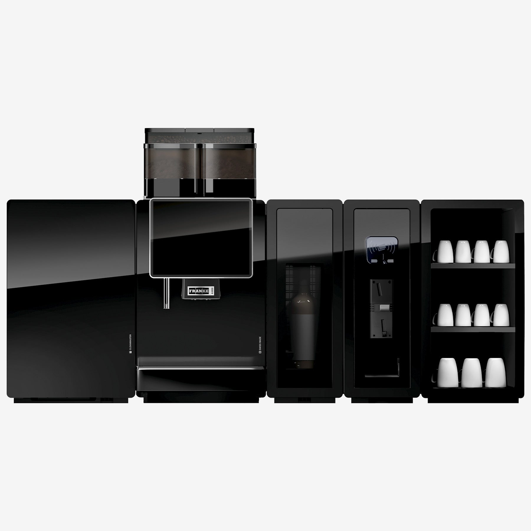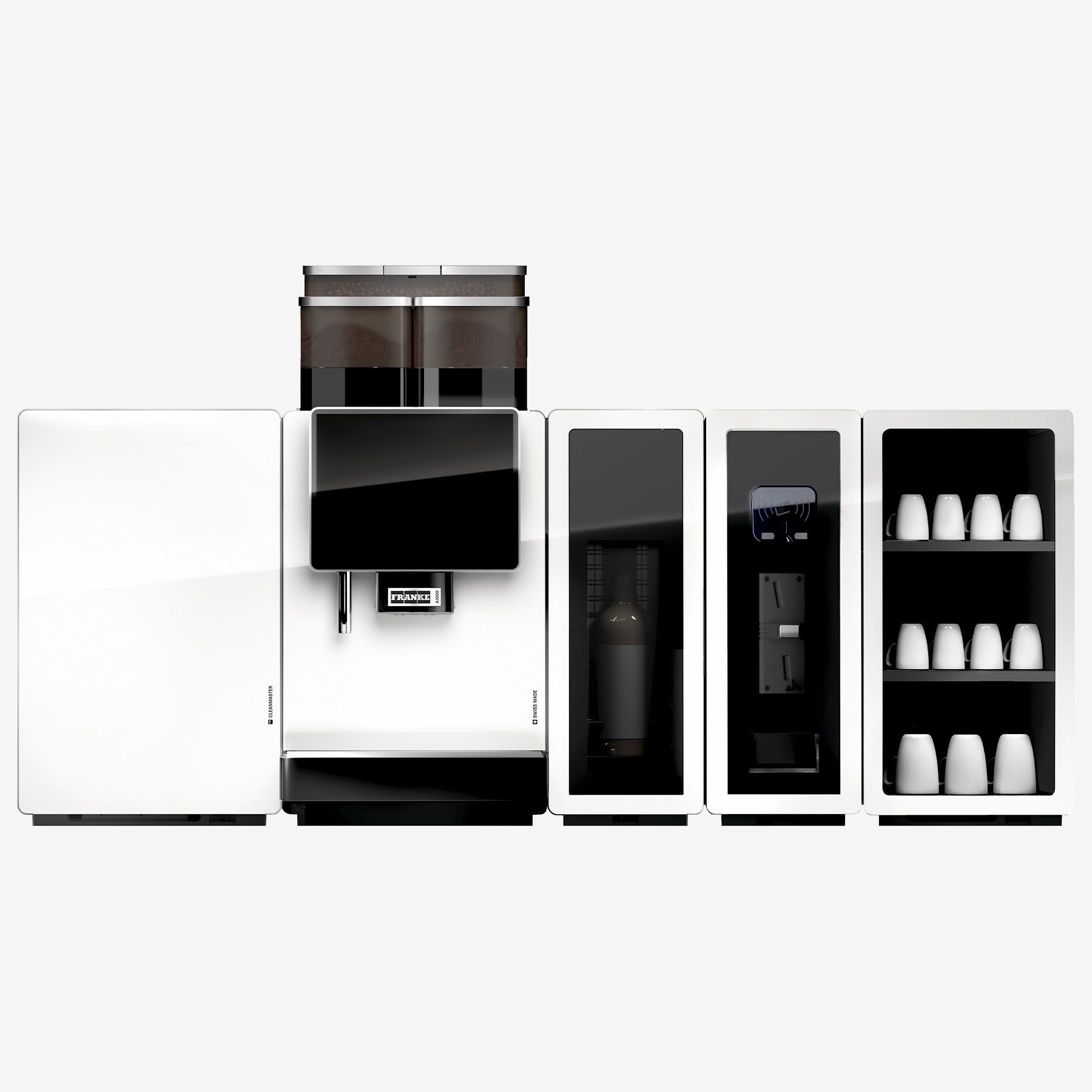 Franke A1000 oferuje także unikalną funkcję stacji dozującej do sześciu różnych syropów smakowych, pozwalając na tworzenie spersonalizowanych kompozycji kawowych. Opcjonalny moduł do kawy mrożonej rozszerza możliwości ekspresu, idealnie wpisując się w sezonowe menu.