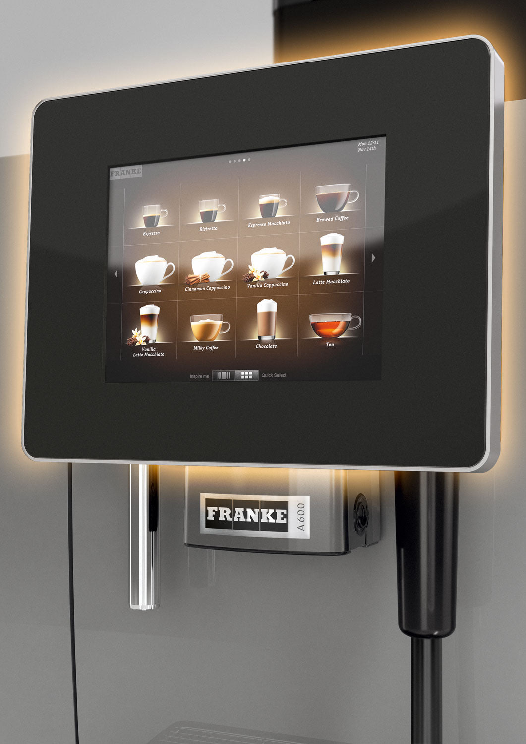 Franke A600 zwiększa efektywność dzięki samoobsłudze i inteligentnym funkcjom. 8-calowy ekran dotykowy zapewnia intuicyjną obsługę i możliwość personalizacji menu oraz wyświetlania reklam.