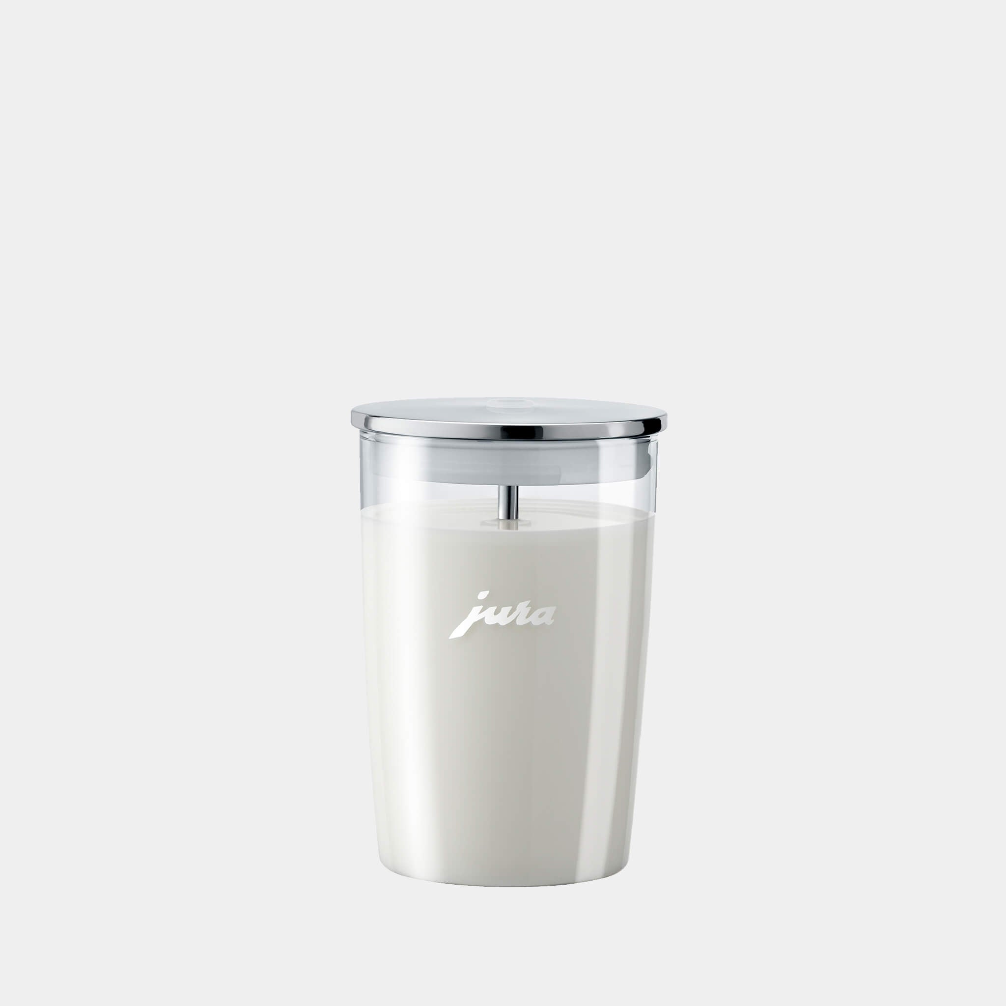 Szklany pojemnik na mleko jest idealnym rozwiązaniem dla miłośników kawowych specjałów, którzy tylko od czasu do czasu chcą się rozkoszować specjałami z dodatkiem mleka lub pianki mlecznej. Opracowany jako doskonale higieniczna alternatywa dla przechowywania mleka w oryginalnym opakowaniu (karton, plastikowa butelka) . Szklany pojemnik na mleko nawiązujący designem do urządzeń JURA wykonany jest z bezpiecznego szkła hartowanego.