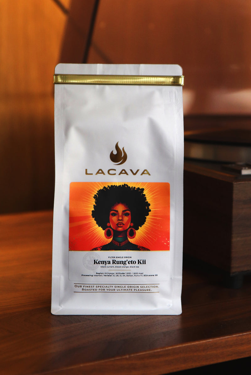 Ta kawa pochodzi ze stacji obróbki Rung'eto Kii w regionie Kirinyaga, gdzie na wysokości 1600–1800 m n.p.m. dojrzewają odmiany SL-28, SL-34, Batian i Ruiru-11. Dzięki starannej obróbce washed ziarna zachowują niezwykłą czystość smaku i charakterystyczną dla kenijskich kaw intensywną owocowość.
