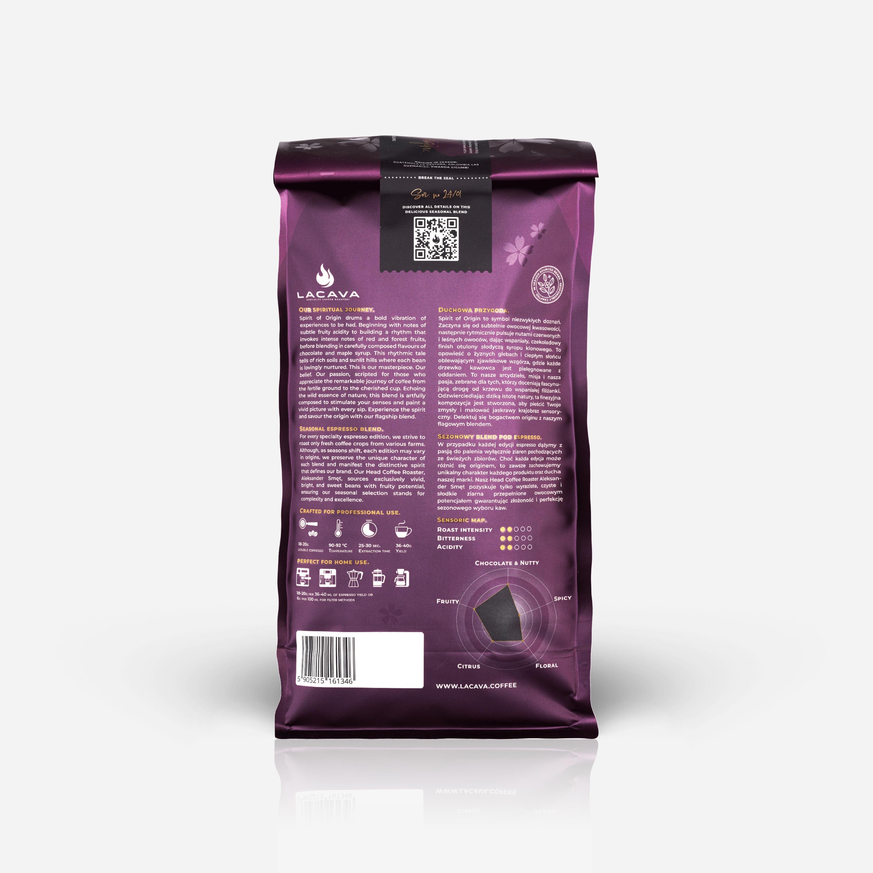 Sezonowość ziaren w blendach polega na paleniu kawy zielonej, która pochodzi z możliwie świeżych zbiorów. Choć każdy nasz blend posiada niezmienny charakter, stopień palenia oraz określony kierunek smakowy, to wraz ze zmianą sezonu, zmieniamy skład i pochodzenie ziaren blendu oraz zestaw dokładnych nut smakowych. Wszystkie szczegóły o originach wchodzących w skład tej edycji blendu znajdziesz na etykiecie - banderoli.