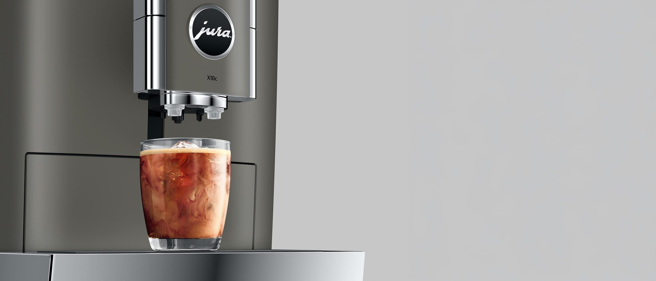 Jedno naciśnięcie. Świeżo mielona kawa. Zimna ekstrakcja pod ciśnieniem. Ekspres X10c tworzy autentyczne Cold Brew dzięki innowacyjnej technologii JURA — zimna woda pulsacyjnie przepływa przez ziarna, wydobywając z nich naturalne, owocowe nuty. To świeżość i aromat zamknięte w perfekcyjnie chłodnej filiżance.
