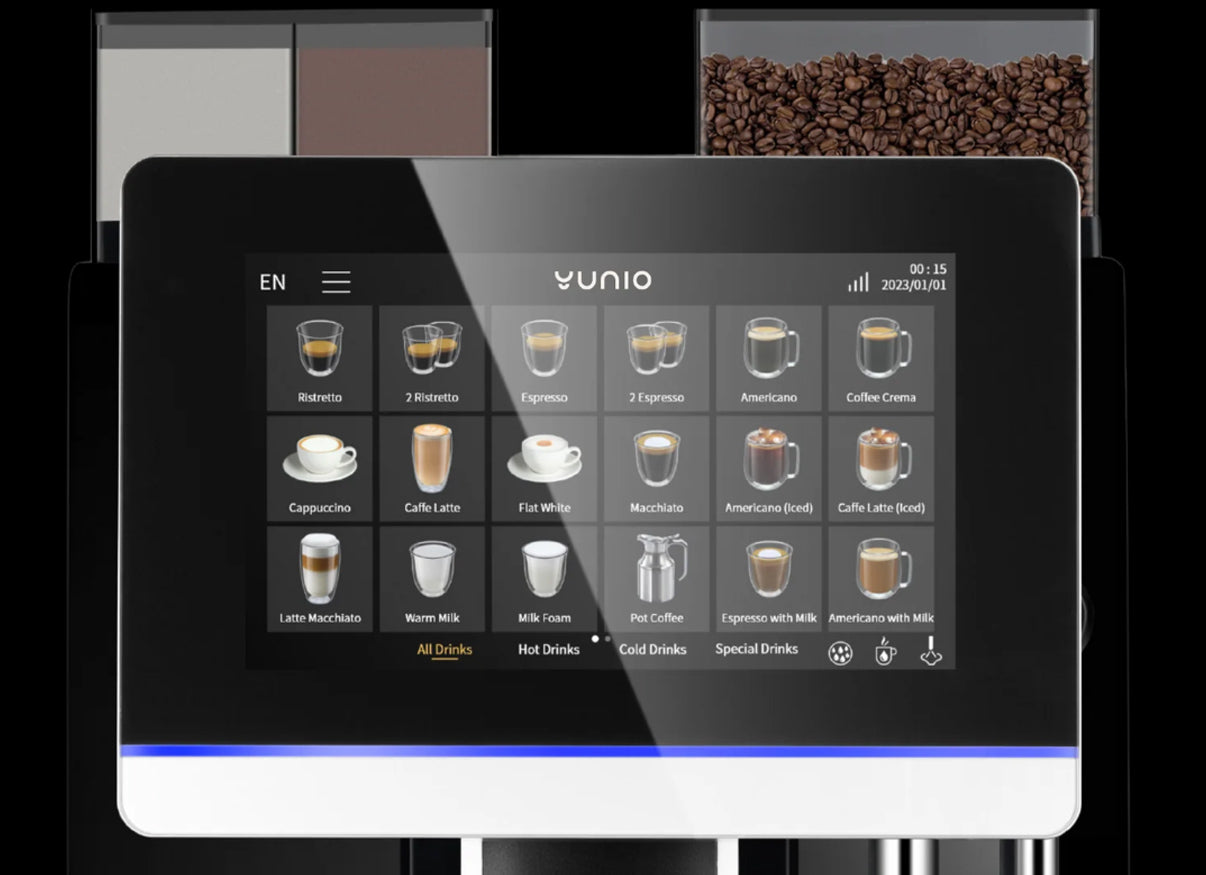 Yunio X92 oferuje moc 2700 W i codzienną wydajność do 70 filiżanek. Możliwość podłączenia do sieci wodociągowej eliminuje konieczność ręcznego uzupełniania wody, a inteligentny system płukania utrzymuje czystość bez wysiłku. Dzięki dotykowemu ekranowi użytkownicy mogą w łatwy sposób wybierać spośród 24 programowalnych napojów, dostosowując moc, ilość i temperaturę według własnych preferencji.